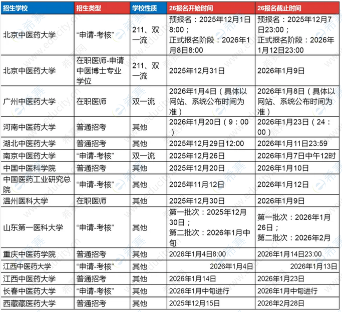 以上这些院校,绝大部分报名截止日期均在1月份,部分院校的报名时间仅剩几天,若是有意申考这些院校的临床医学博士,就需尽快完成报名了。