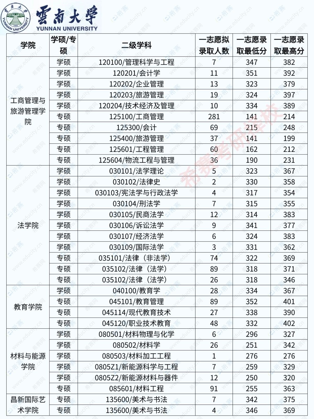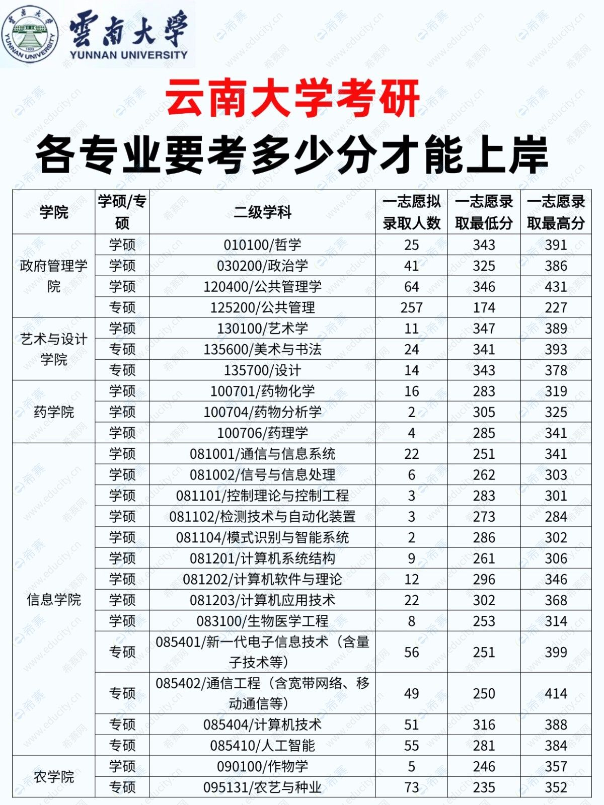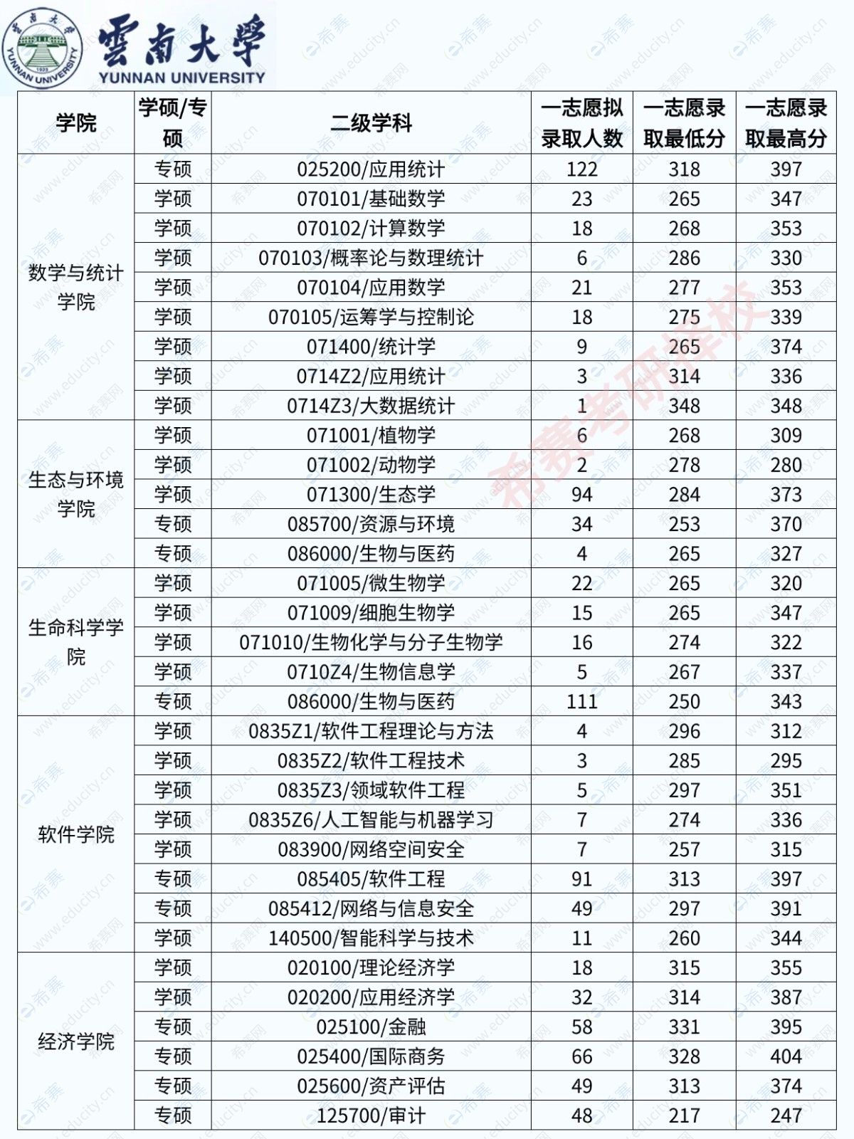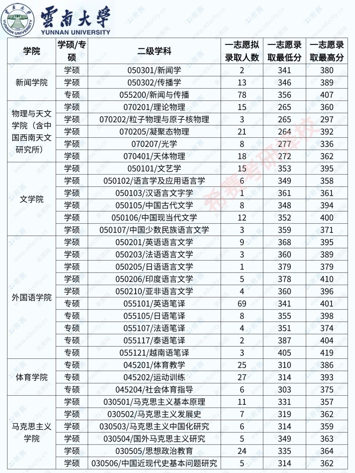 下面是25年的云南大学各专业录取分数数据,26年数据还在整理中!