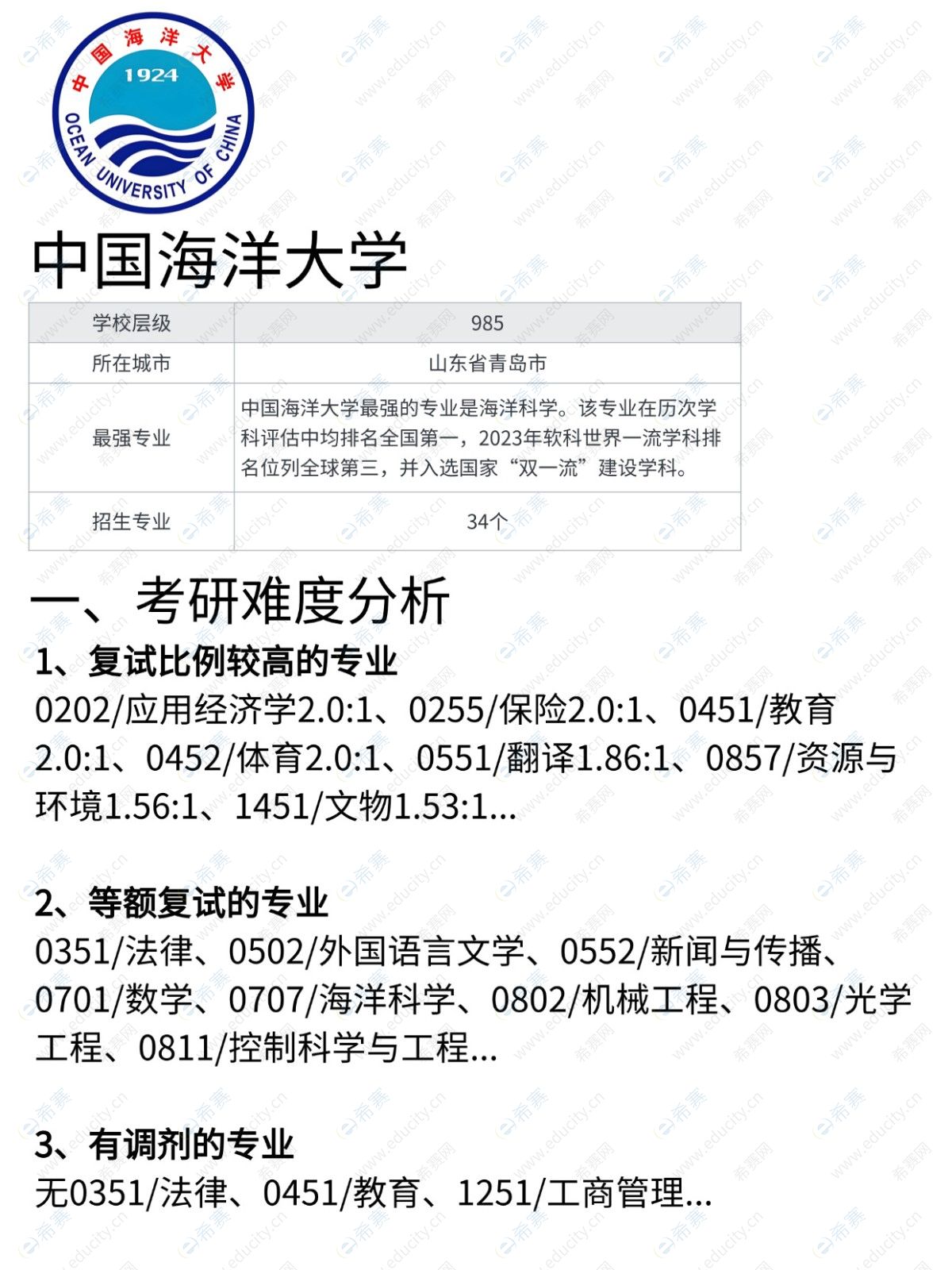 关于中国海洋大学考研难度介绍就到这里。