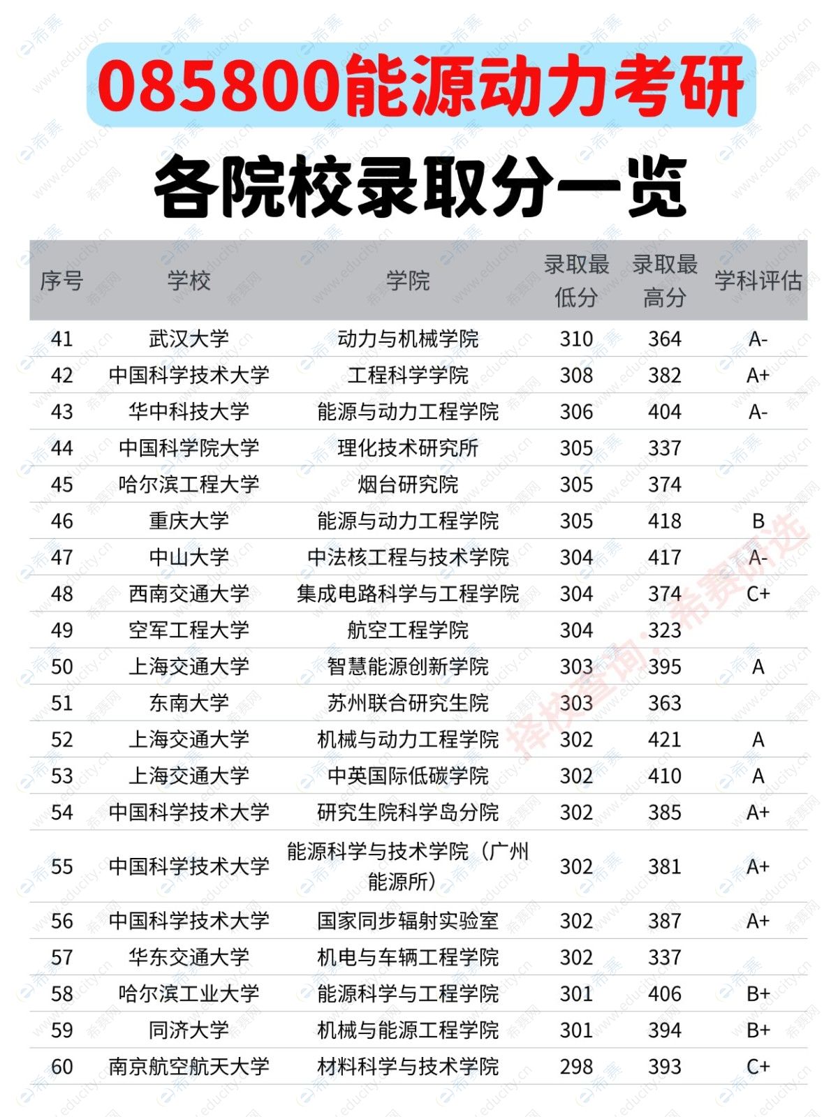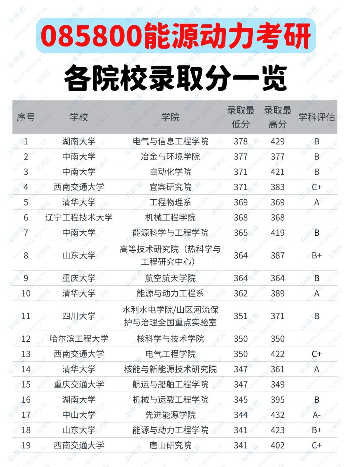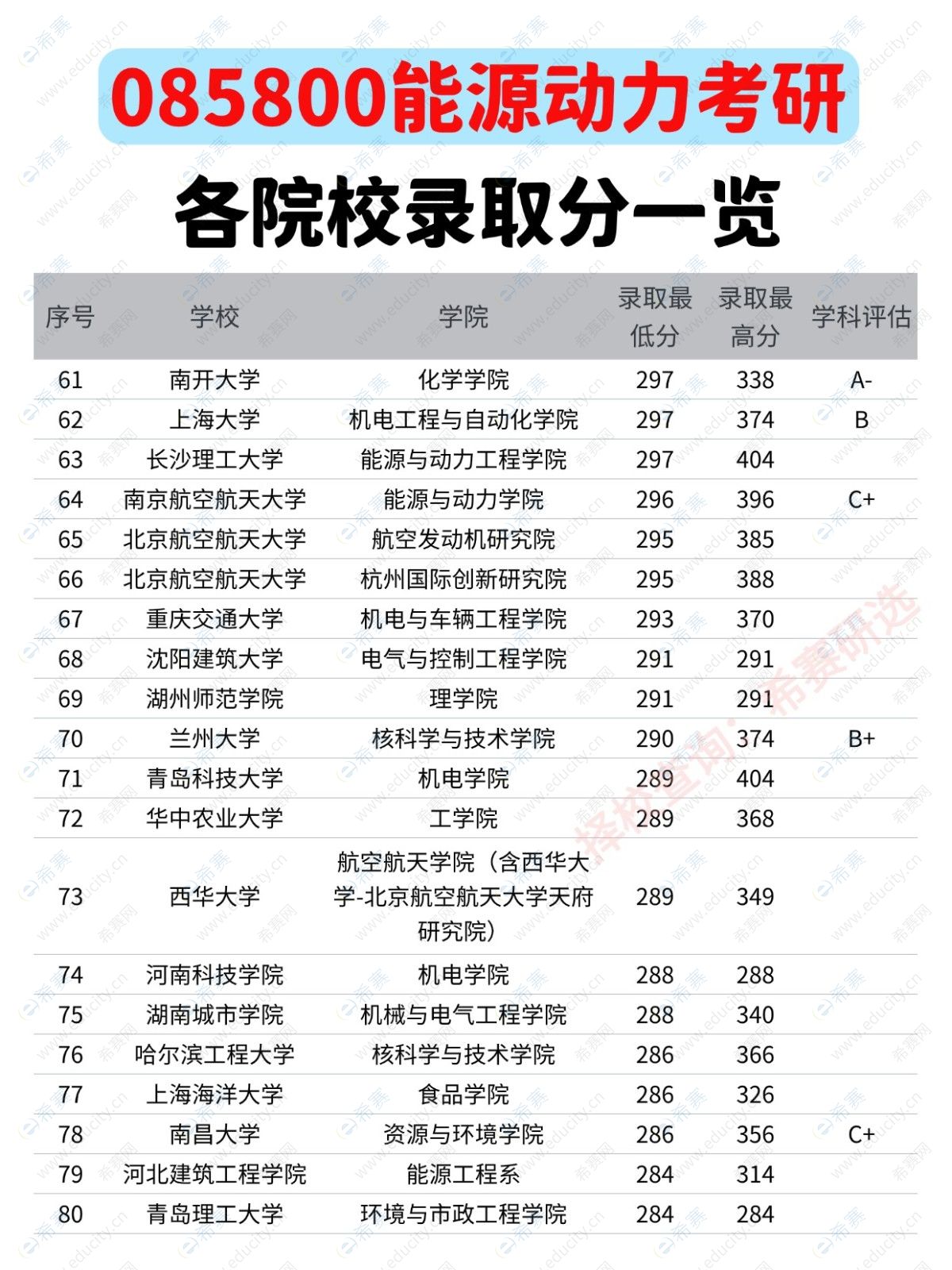 085800能源动力考研各院校录取分一览表: