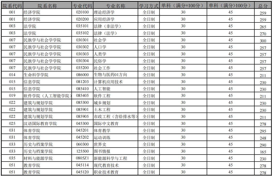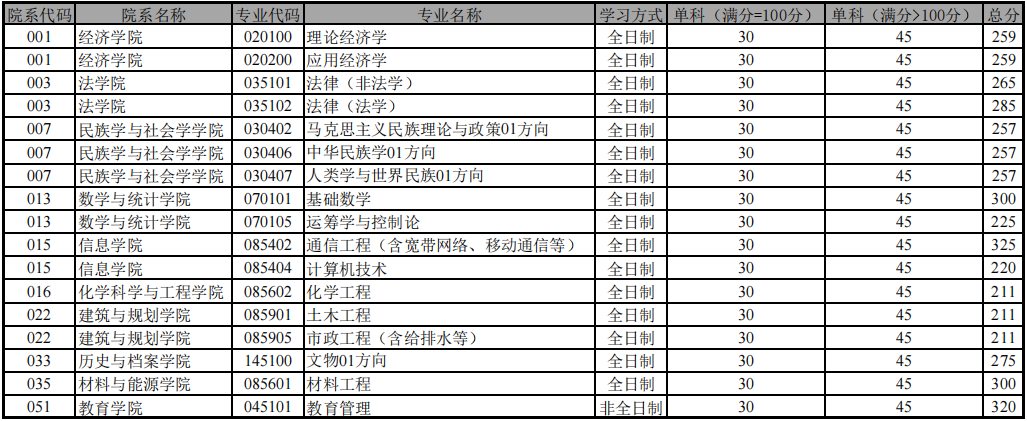 附件:云南大学2026年硕士研究生招生考试一志愿各专业进入复试的初试成绩要求