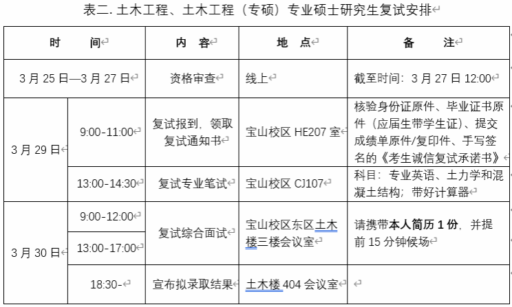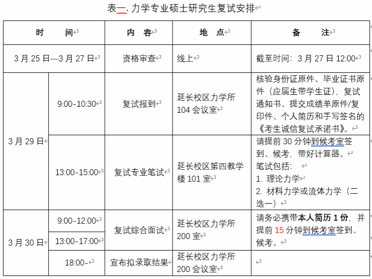 第一志愿达到本学院各学科专业复试分数线的考生,复试时间安排分别见表一和表二。复试相关要求如下: