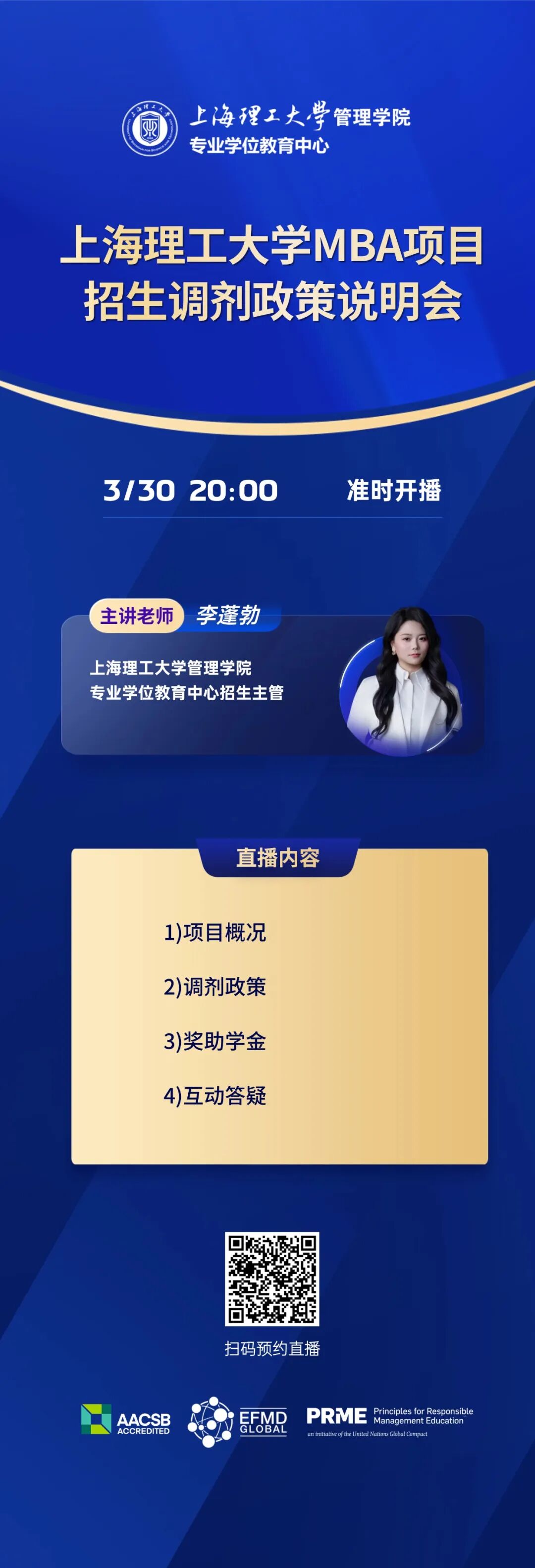 今晚8时,首场直播——2026上海理工大学MBA项目招生调剂政策说明会正式开启,不容错过!