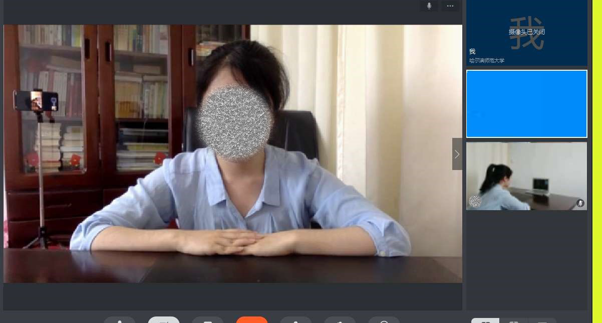 面试过程中:主机位摄像头、话筒都打开。辅机位摄像头打开,开启静音状态并关闭设备扬声器。