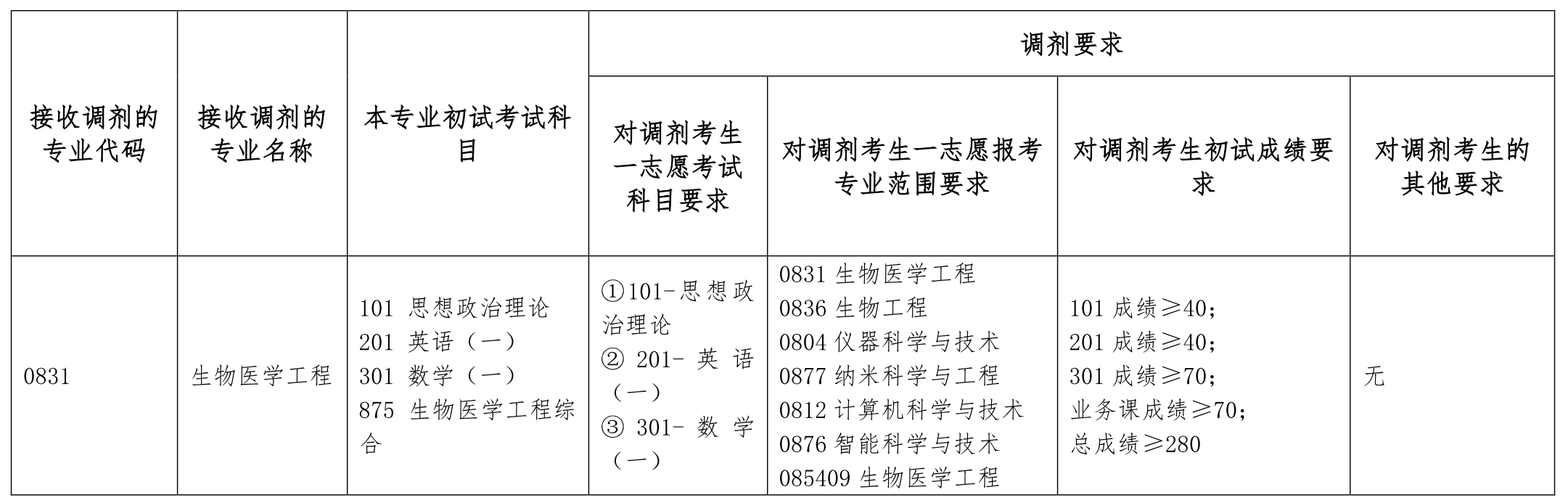 (1) 一志愿报考专业为0831生物医学工程专业优先;