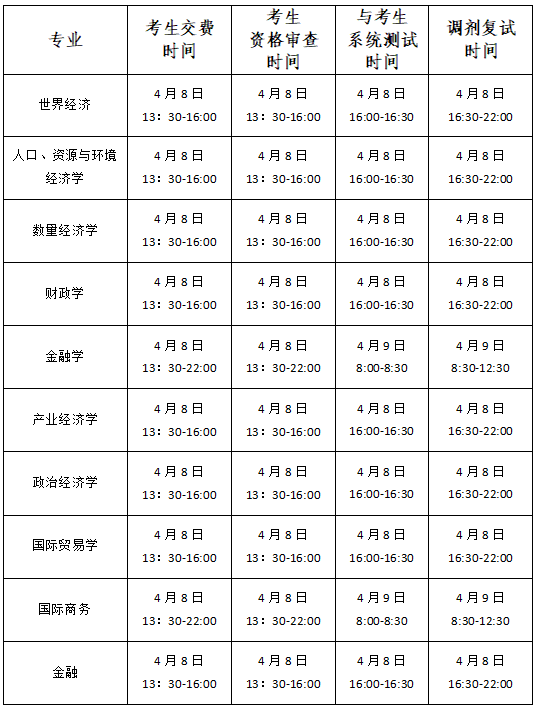 3. 考生应保持手机通讯畅通,方便工作人员联系,提前进行系统调试,系统交费、上传材料、测试时间和复试时间如下: