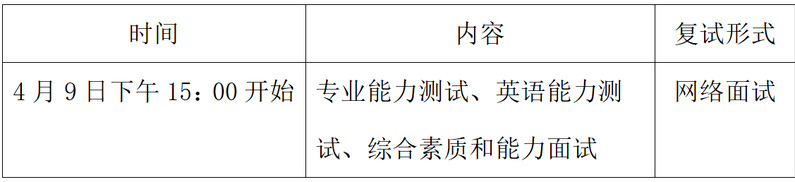 2、面试考核:复试工作秘书按考生顺序号依次邀请考生进入面试会议室。面试时,考生不得透露姓名、本科就读学校等个人信息。考官对考生专业能力、综合素质和能力、英语听力和口语进行考察提问,考生作答。