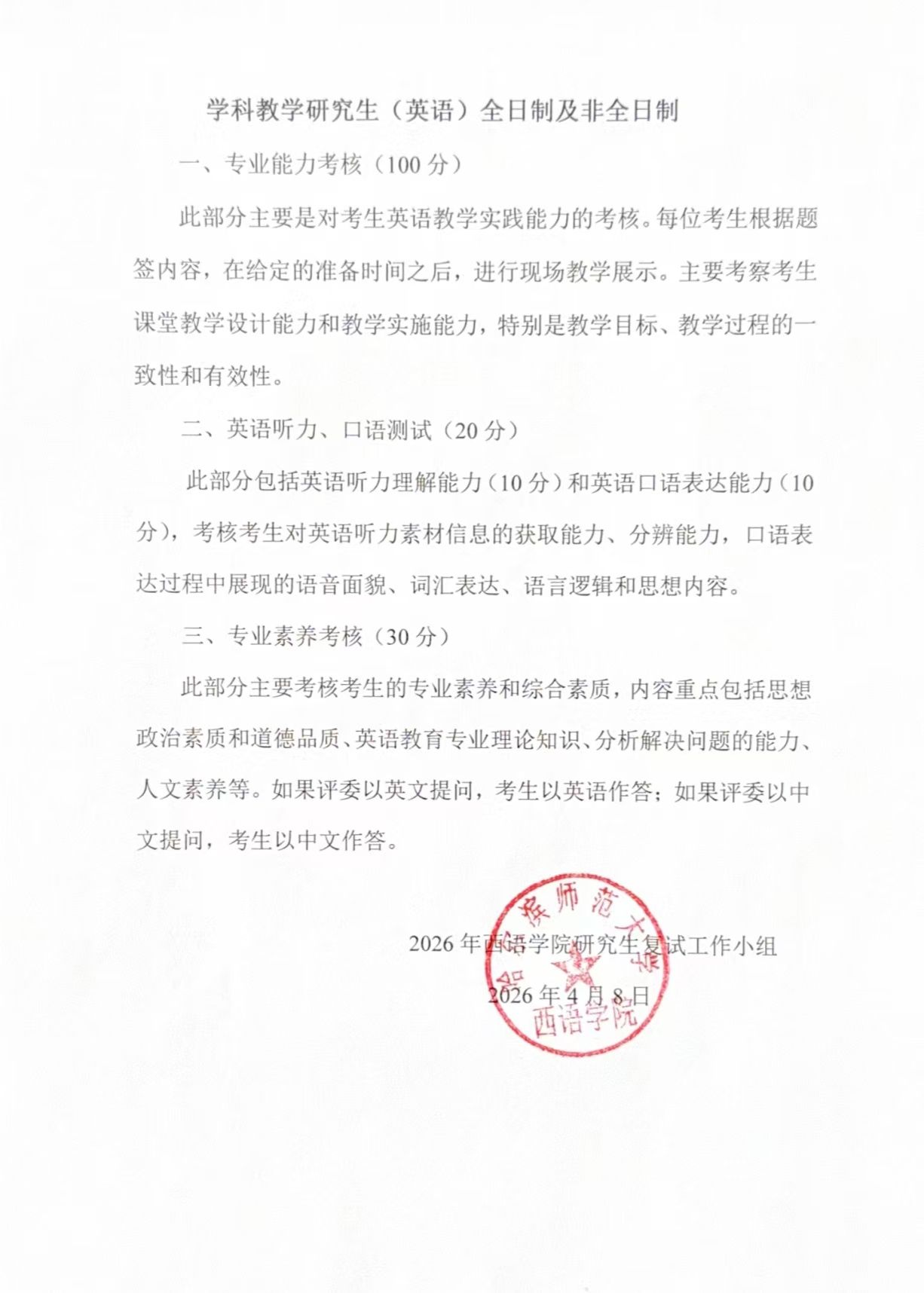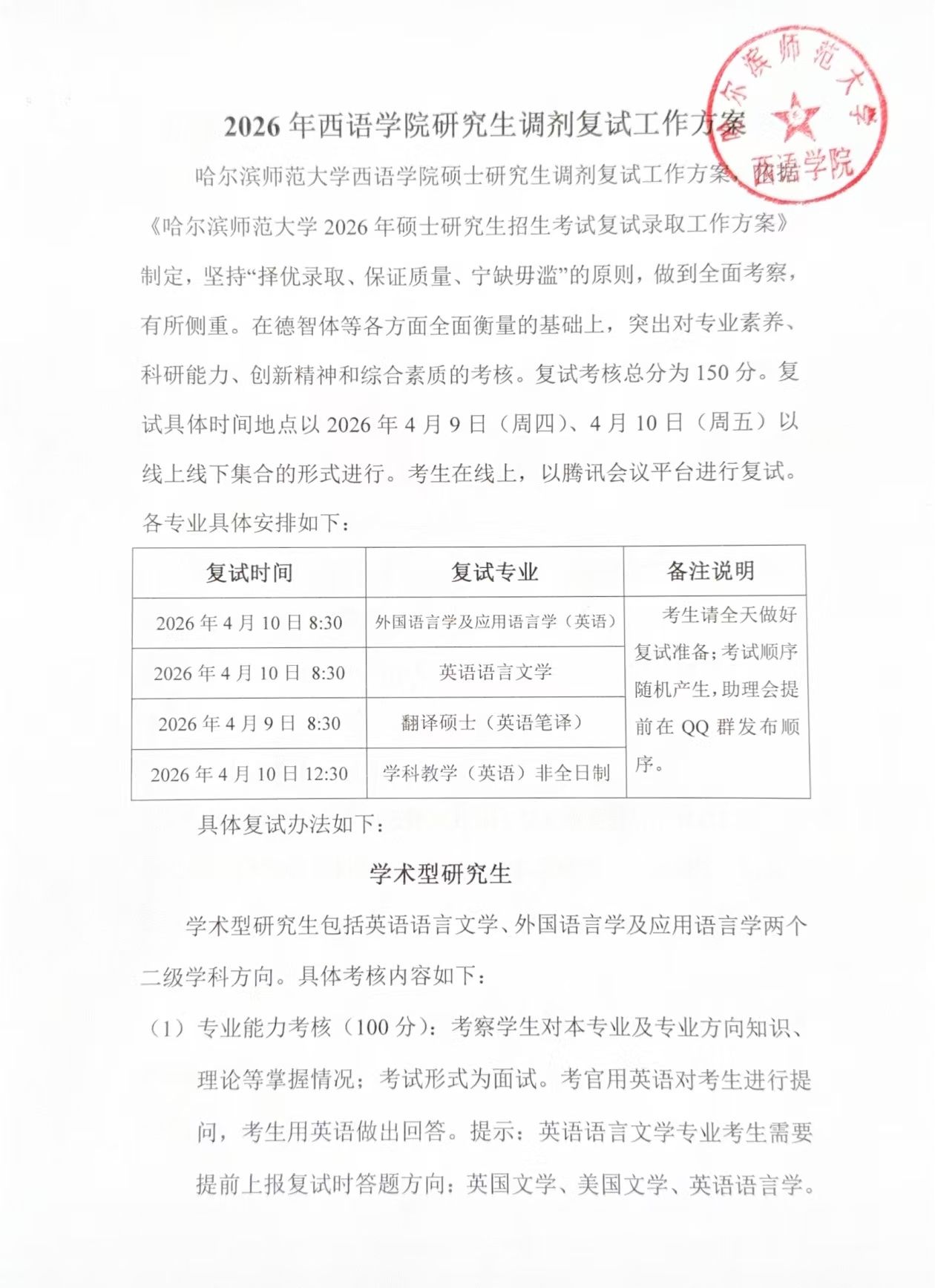 2026年西语学院研究生调剂复试工作方案