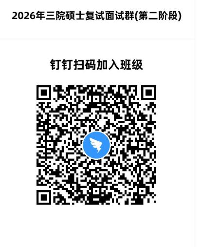 2.请符合入群资格条件的考生,在4月11日下午17点前扫码加入招生复试钉钉群“2026年三院硕士招生复试群(第二阶段)”,确保每位考生都能接收到相关信息,谢谢各位考生的配合。