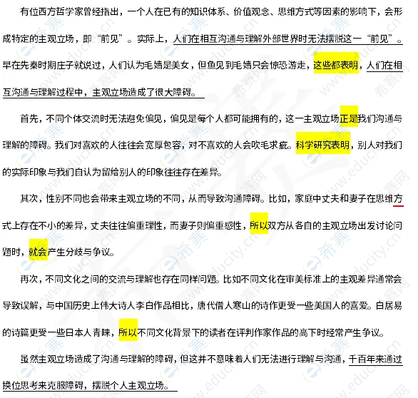 1、“西方哲学家曾经指出……”➡“无法摆脱前见”(缺陷不明显,不建议分析)