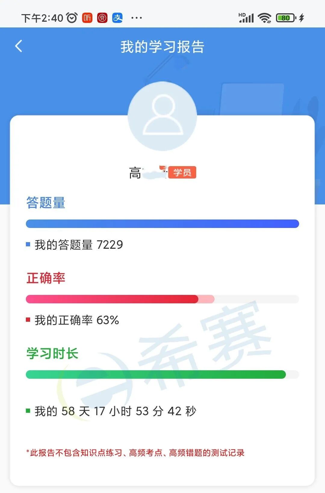 因为停考,希赛又给了我半年的学习权限。当时就想,这是上天助我呀!我决定要好好珍惜这天赐的机会,一定要加倍努力学习,争取一次考过!