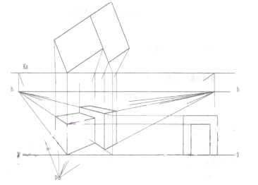画出建筑形体的两点透视图。(本大题共10分)
