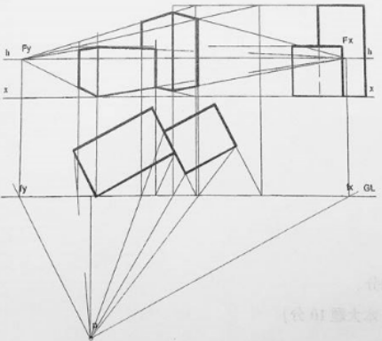 根据所给的条件画出建筑形体的透视图。 (本大题10分)