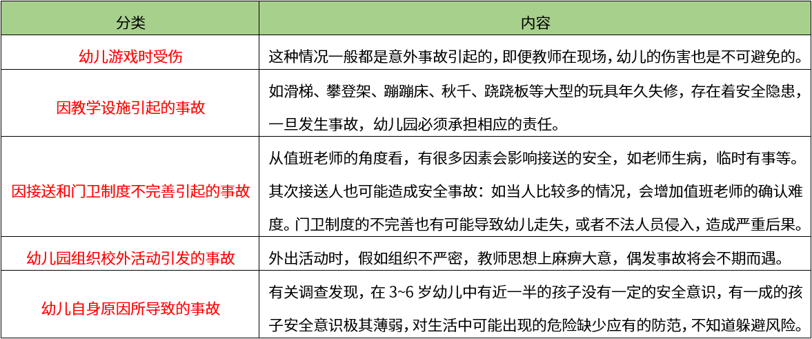 【希赛点拨】幼儿园安全事故大致可以分为以下几类:
