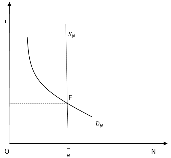 如图所示,由于土地的供给量固定不变,因而土地的价格只与土地的市场需求曲线Dn有关,即地租率完全由厂商对于土地的需求所决定:需求越大,地租率越高;需求越小,地租率越低。由于土地的需求取决于土地的边际产量与土地上生产的产品价格的乘积,因而地租率取决于土地的边际产量和产品的价格。首先,土地的边际产量受到土地本身质量和生产技术的影响。例如,肥沃的土地可以使得农业生产率提高,所以肥沃土地的地租就高。其次,土地上生产出来的产品的价格影响地租率:价格越高,地租率越高;反之,产品价格越低,地租率也就越低。