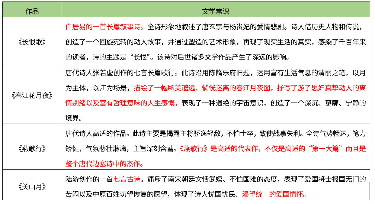 【考点】本题考查指定篇目-诗词曲赋单元-《长恨歌》