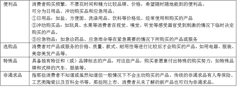 饮料类商品对大多数消费者来说属于消费品分类中的( )。