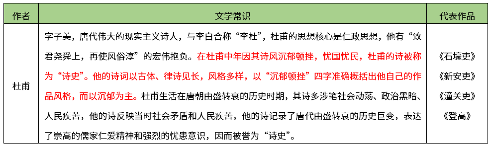 4.【考点】本题考查文学常识-作家作品常识-杜甫