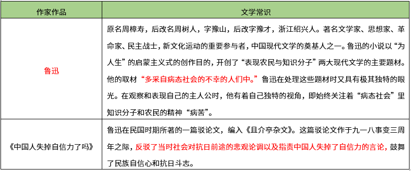 【考点】本题考查指定篇目-议论文单元-中国人失掉自信力了吗【解析】《中国人失掉自信力了吗》(节选)“我们从古以来,就有埋头苦干的人,有拼命硬干的人,有为民请命的人,有舍身求法的人,……虽是等于为帝王将相作家谱的所谓“正史”,也往往掩不住他们的光耀,这就是中国的脊梁。这一类的人们,也何尝少呢?他们有确信,不自欺;他们在前仆后继的战斗,不过一面总在被摧残,被抹杀,消灭于黑暗中,不能为大家所知道罢了。说中国人失掉了自信力,用以指一部分人则可,倘若加于全体,那简直是诬蔑。要论中国人,必须不被搽在表面的自欺欺人的脂粉所诓骗,却看看他的筋骨和脊梁。自信力的有无,状元宰相的文章是不足为据的,要自己去看地底下。”文中说到的“中国的脊梁”及埋头苦干的人、拼命硬干的人、为民请命的人、有舍身求法的人,“他们有确信,不自欺;他们在前仆后继的战斗,不过一面总在被摧残,被抹杀,消灭于黑暗中,不能为大家所知道罢了”。【希赛点拨】