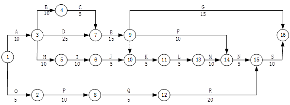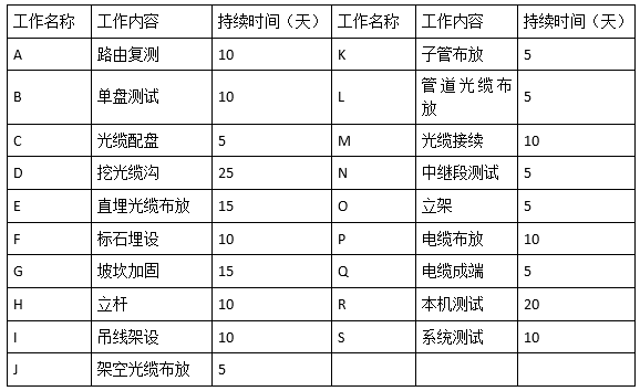 某传输网工程由光缆线路工程和设备安装工程两部分组成。线路部分包括直埋、架空和管道光缆,其中直埋光缆线路与季节性河流交越(施工时为无水季节);设备安装工程主要安装DWDM设备。合同约定:建设单位负责采购钢绞线、光缆和设备。办理过河手续及赔补费用;施工单位负责采购子管,水泥和沙石;工期90天。施工单位提交的初步施工进度网络计划得到了建设单位批准,如下图所示:
