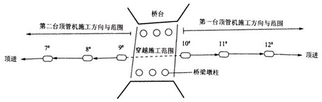 (2)在穿越施工条件齐全后,为了满足建设方要求,项目部将10号井作为第二台顶管设备的始发井,向原8号井顶进。施工方案经项目经理批准后实施。