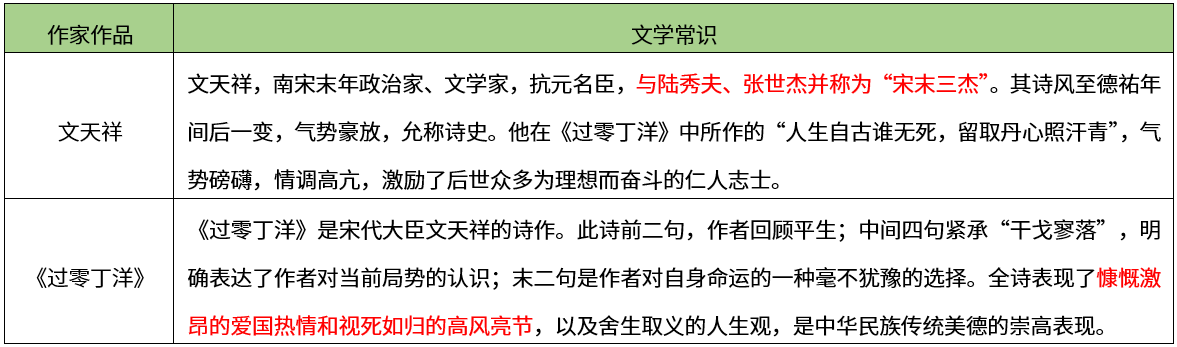 【考点】本题考查文学常识-文学文化常识-中国古代文学-《过零丁洋》【希赛点拨】