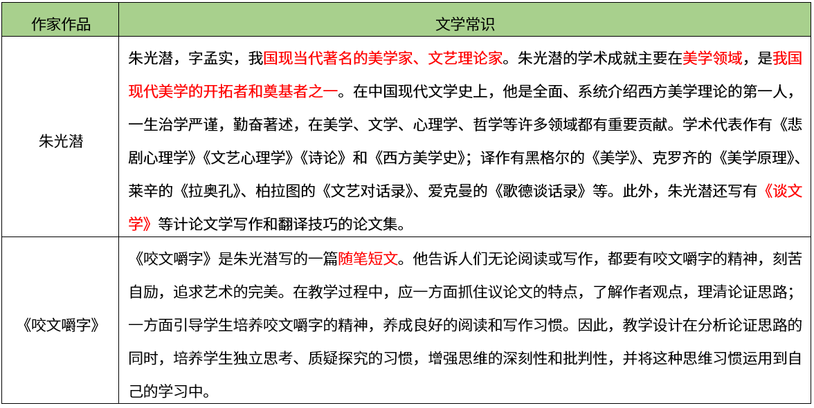 【考点】本题考查作品篇目-议论文单元-《咬文嚼字》【解析】朱光潜的《咬文嚼字》是一篇文艺专论,主要论述了文学写作与阅读中讲究文字运用的道理,提倡一字不肯放松的谨严精神。故本题选C。【希赛点拨】