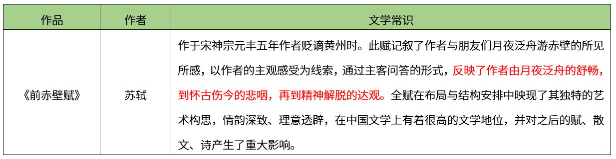 【考点】本题考查指定篇目-诗词曲赋单元-《前赤壁赋》
