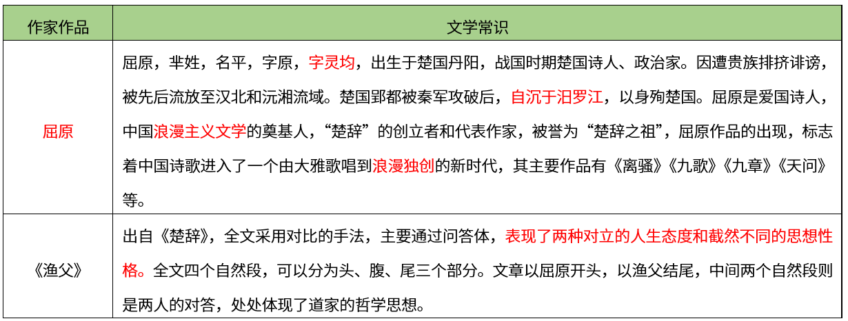 【考点】本题考查指定篇目-诗词曲赋单元-《渔父》