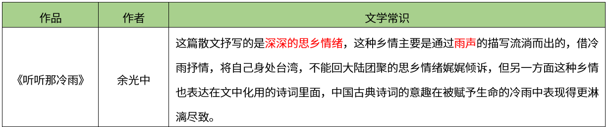 【考点】本题考查指定篇目-记叙文单元-《听听那冷雨》