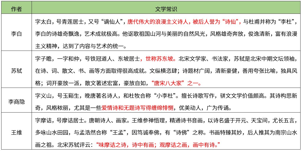 【考点】本题考查文学常识-作家作品常识-中国古代文学【解析】王维参禅悟理,精通诗书音画,以诗名盛于开元、天宝间,尤长五言,多咏山水田园,与孟浩然合称“王孟”,书画特臻其妙,后人推其为南宗山水画之祖。北宋苏轼评云:“味摩诘之诗,诗中有画;观摩诘之画,画中有诗。”故本题选D。【希赛点拨】