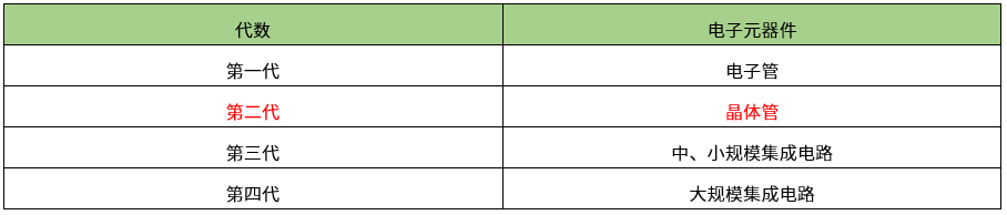 第二代电子计算机的主要元件是( )。