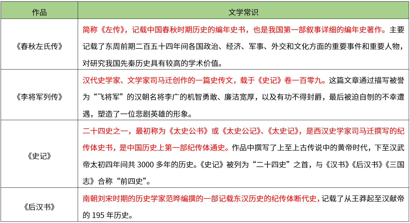 【解析】《史记》是我国古代散文史上的一座丰碑,给后人以无穷的启示和深远的影响,被鲁迅誉为“史家之绝唱,无韵之离骚”。故本题选C。