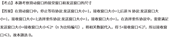对于滑动窗口协议,如果分组序号采用 3 比特编号,发送窗口大小为 5,则接收窗口最大是( )。