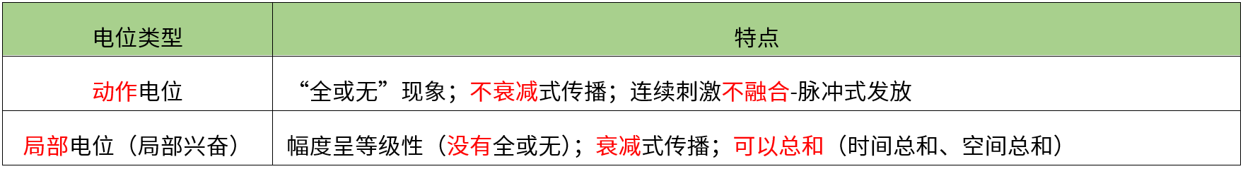 【考点】本题考查细胞的基本功能-细胞的生物电活动-动作电位-局部电位(局部兴奋)【解析】局部电位的特点:(1)幅度呈等级性:没有“全或无”现象;(2)衰减式传播:以电紧张扩布传导;(3)反应可以总和:包括空间总和和时间总和。故本题选D。 【希赛点拨】动作电位和局部电位的特点比较: