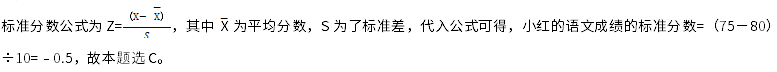 在最近的语文考试中,平均分数为80分,考试分数的标准差为10,小红考了75分,如果把她的成绩换算成标准分数。她的分数是多少?( )。