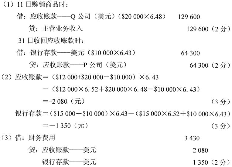 (2) 31日,收回P公司应收账款10 000美元,当日即期汇率为1美元=6.43元人民币。