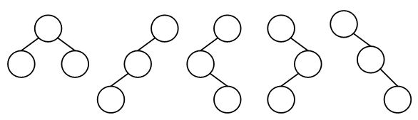 对于三个结点A、B、C,可构成( )棵不同的二叉树。