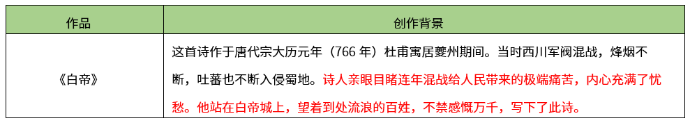 【考点】本题考查隋唐五代文学-《白帝》-作品内容