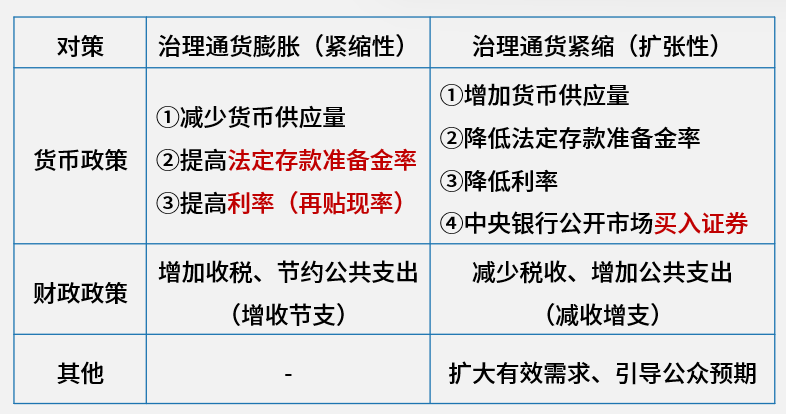 题干中从紧货币政策,即紧缩性货币政策,紧缩性货币政策是治理通货膨胀的措施,具体如下: