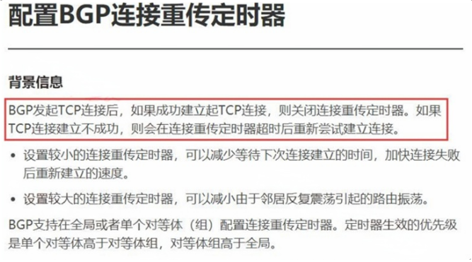 BGP发起TCP连接后,如果成功建立起TCP连接,则关闭连接重传定时器。如果TCP连接建立不成功,则会在连接重传定时器超时后重新尝试建立连接。( )