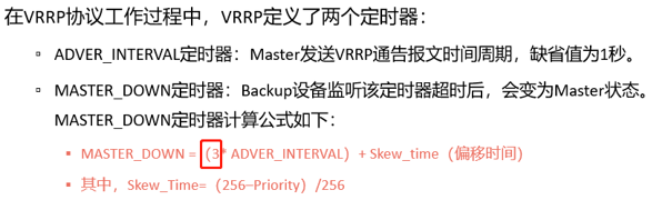 在作VRRP组网中,VRRP备份组通过收发VPPR协议报文进行主备状态的协商,以实现设备的冗余备份功能。当VRRP备份组之间的链路出现故障时,由于此时VRRP报文无法正常协商,Backup设备需要等待( )倍协商周期后才会切换为Master设备。(阿拉伯数字)