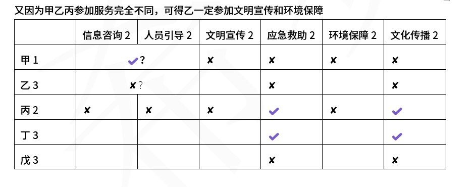 若丙只参加其中2项志愿服务,则可以得出以下哪项?