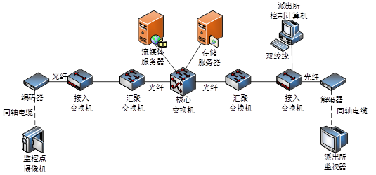 运营商传输网络负责所有视频监控信号的传输、存储和转发,由传输设备、网络设备、存储设备等构成。