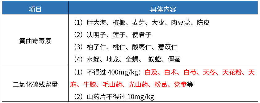 外源性有害物质及检测常考点:黄曲霉毒素、二氧化硫残留量。