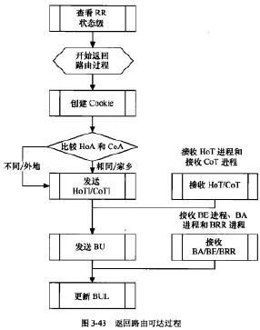 发送到通信节点的绑定更新保护不需要安全联盟的配罝或者在移动节点和通信节点之间的一个认证机制,取而代之的是返回路由可达过程,用来保证是正确的移动节点发送消息,在不产生新的安全问题的情况下,对移动IPv6提供足够的支持。